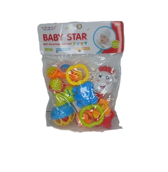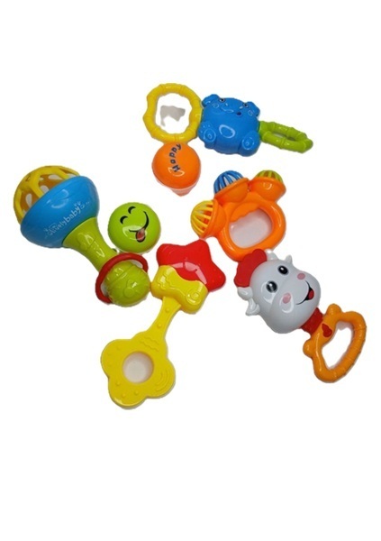 - ۶ جغجغه رنگی همراه با لسهگیر برای دست کودک